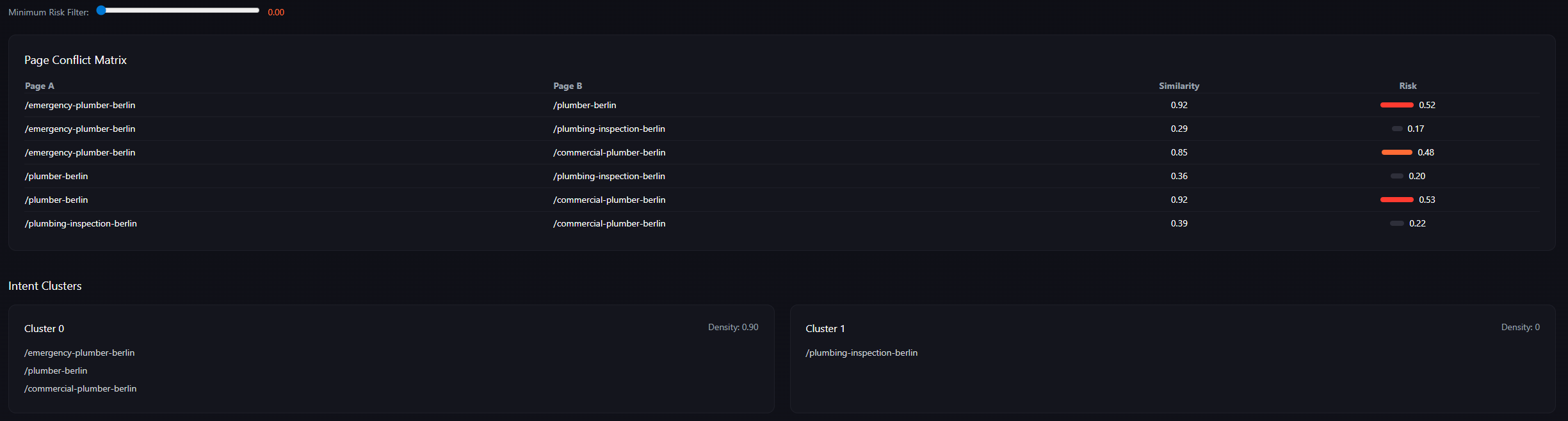 - Intent cannibalization clusters